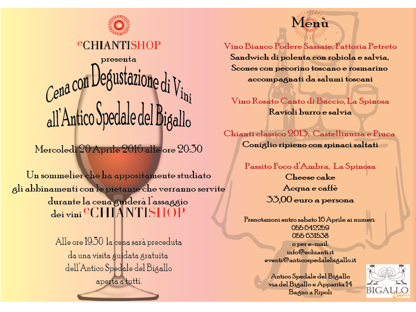 Prenotazione della cena obbligatoria a eventi@anticospedalebigallo.it o 055631538, entro Lunedì 29 Febbraio Antico Spedale del Bigallo, Via del Bigallo e Apparita 14, Bagno a Ripoli (FI)